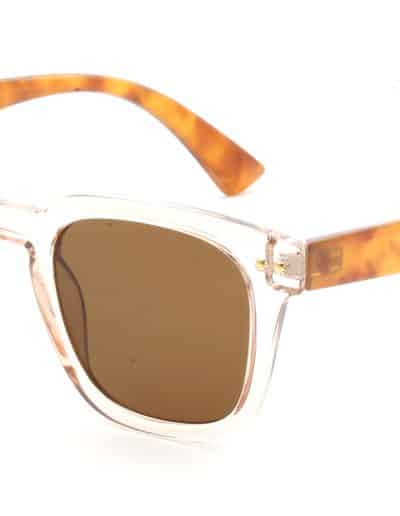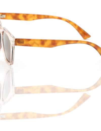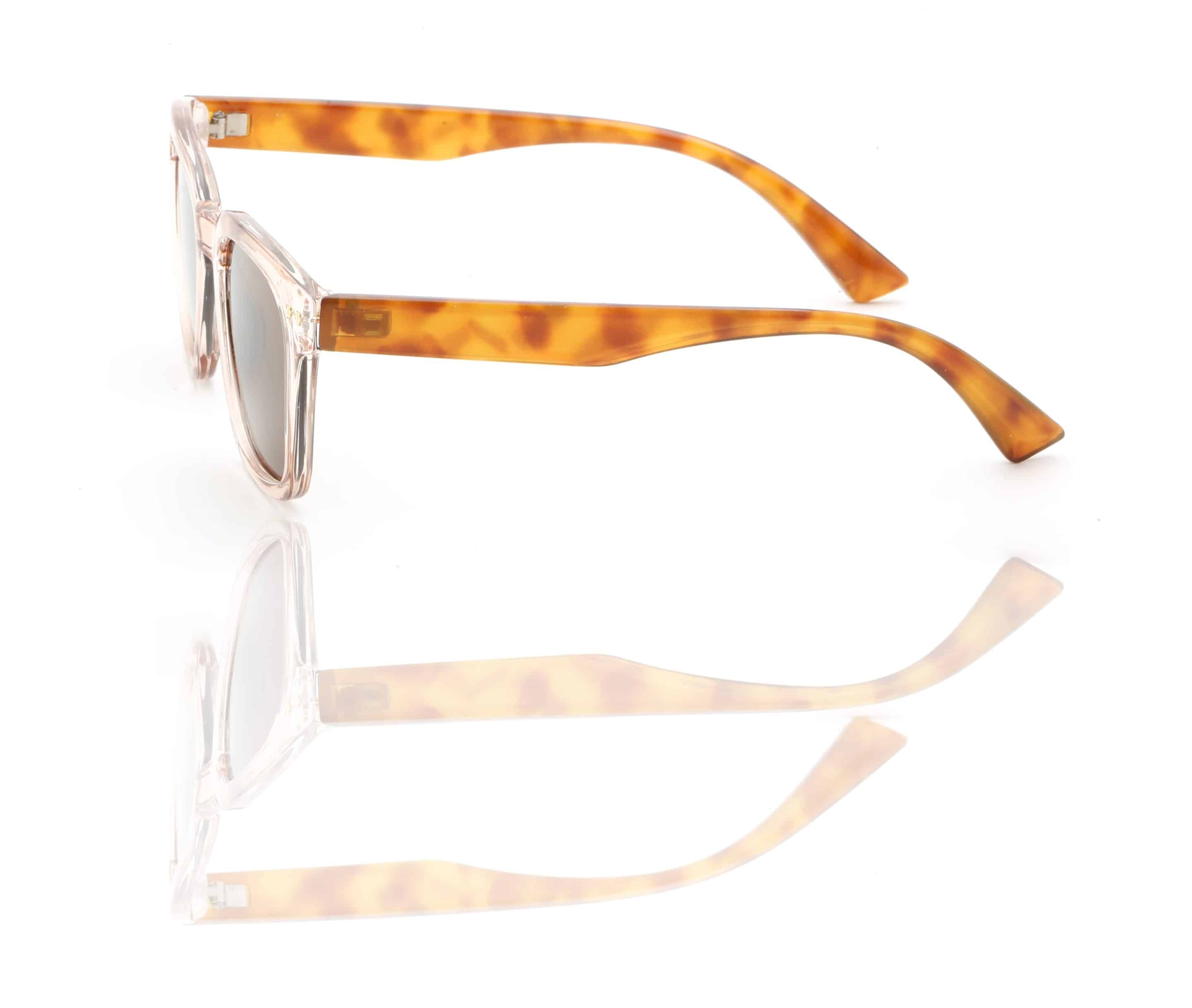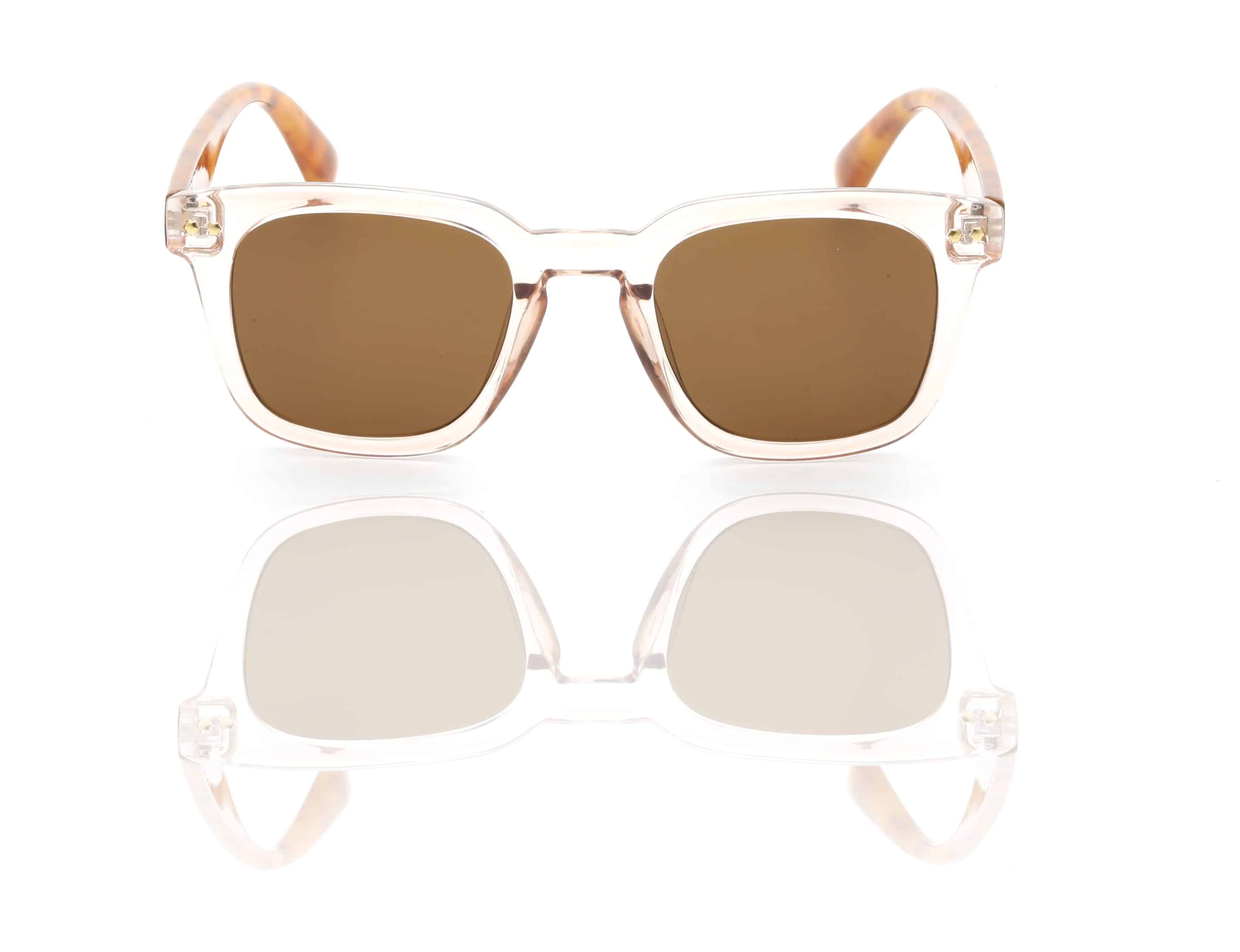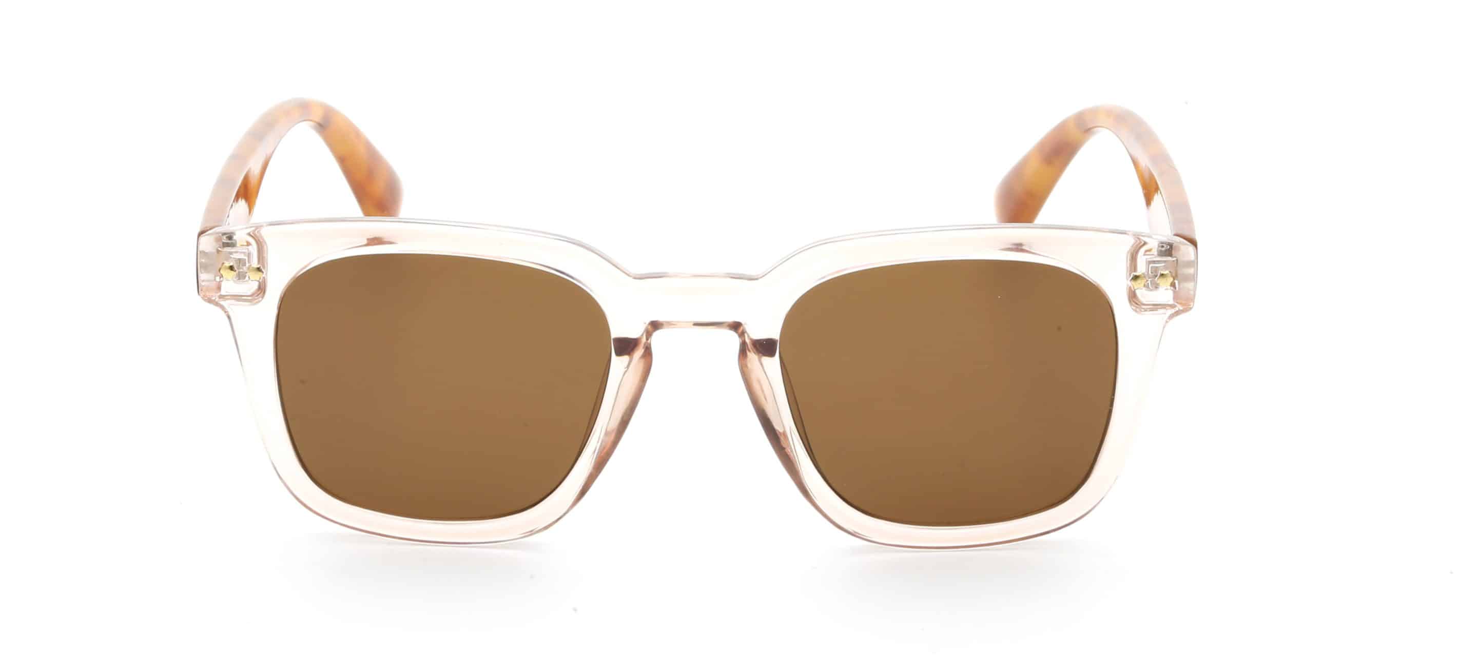 - Transparent pink frame with brown tort arms