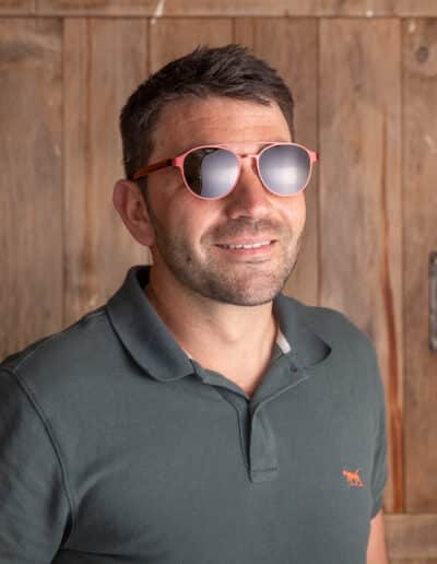 - Maroon metal frame with maroon polarised gradient lens and red wood arms