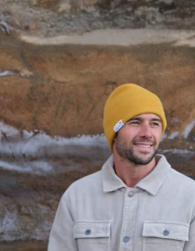 Warm and naturally inspired, this mustard-coloured beanie captures the earthy tones of open landscapes and golden grasses. Its soft, muted hue brings an easy, organic feel to your wardrobe, while the comfortable fit makes it ideal for everyday wear.